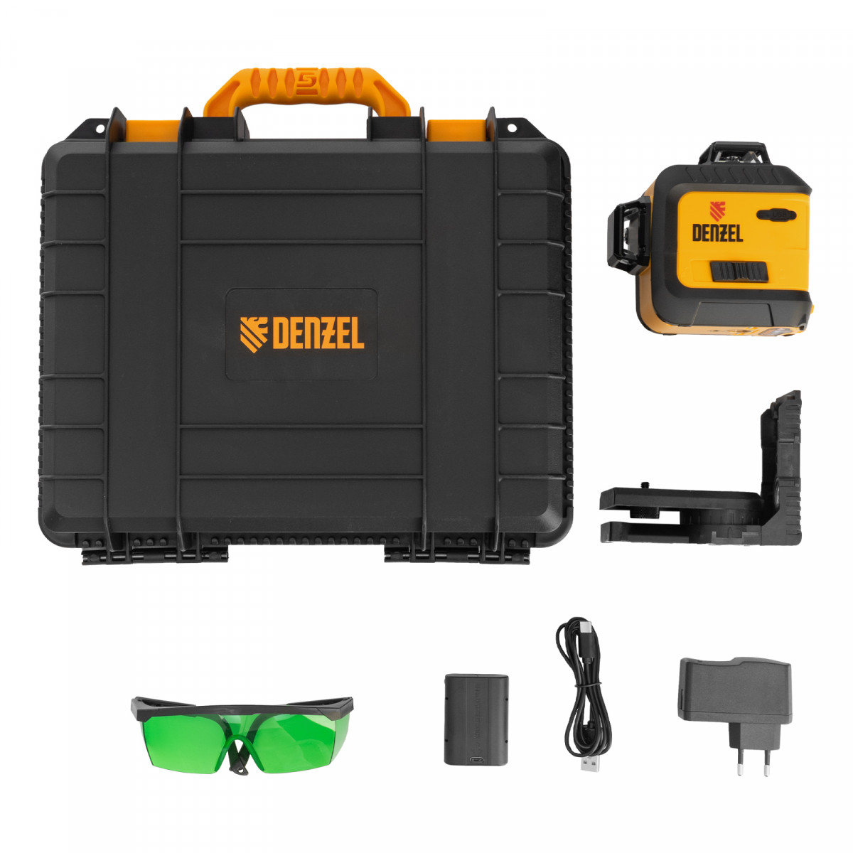 Лазерный уровень мультипризм. LXI 360-2 Green, 30 м, 520 Нм, акк. Li 2800 mAh, резьба 1/4" Denzel