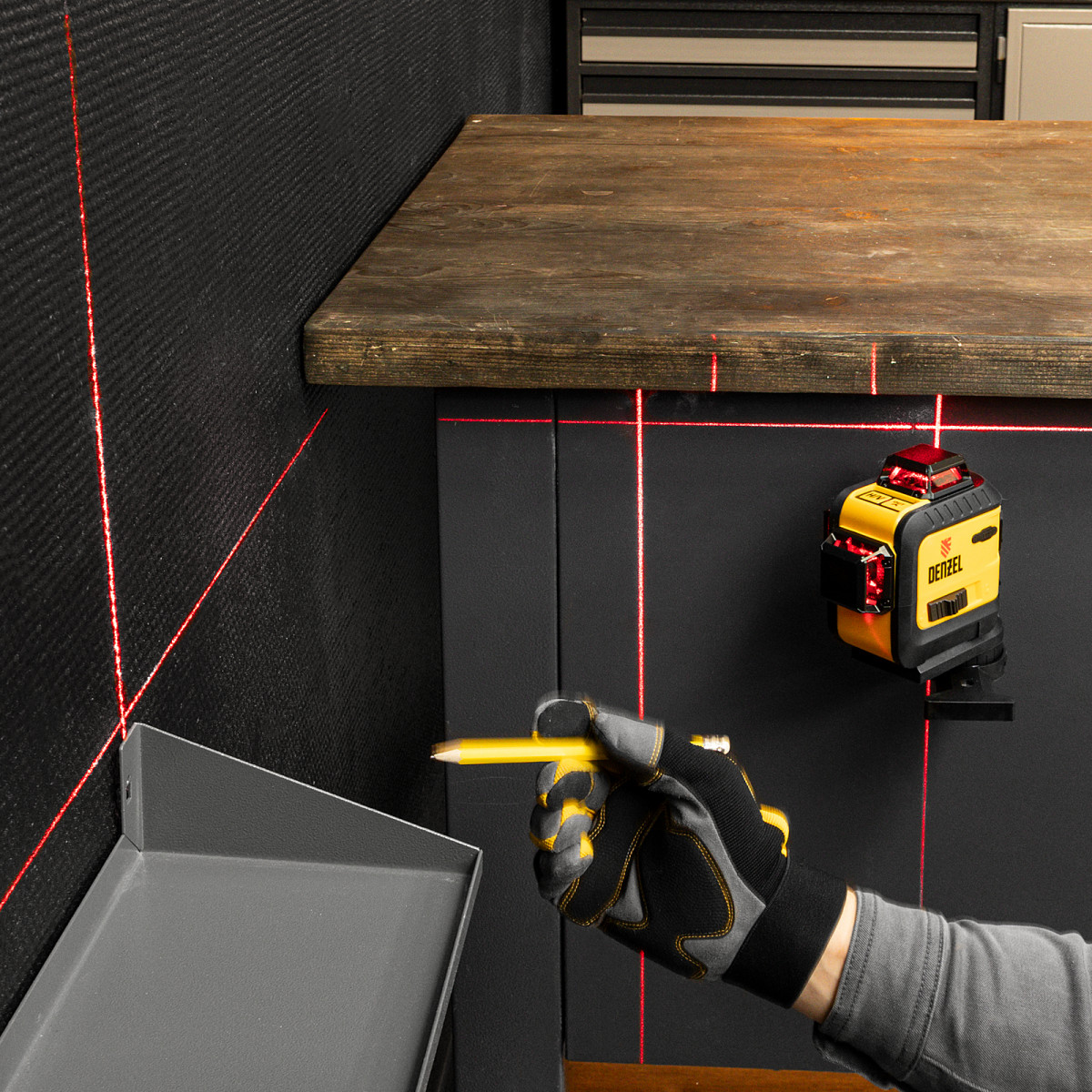 Лазерный уровень мультипризменный LX 360-3 Red, 30 м, 635 нм, аккумулятор Li 2800 мАч, резьба 5/8" Denzel
