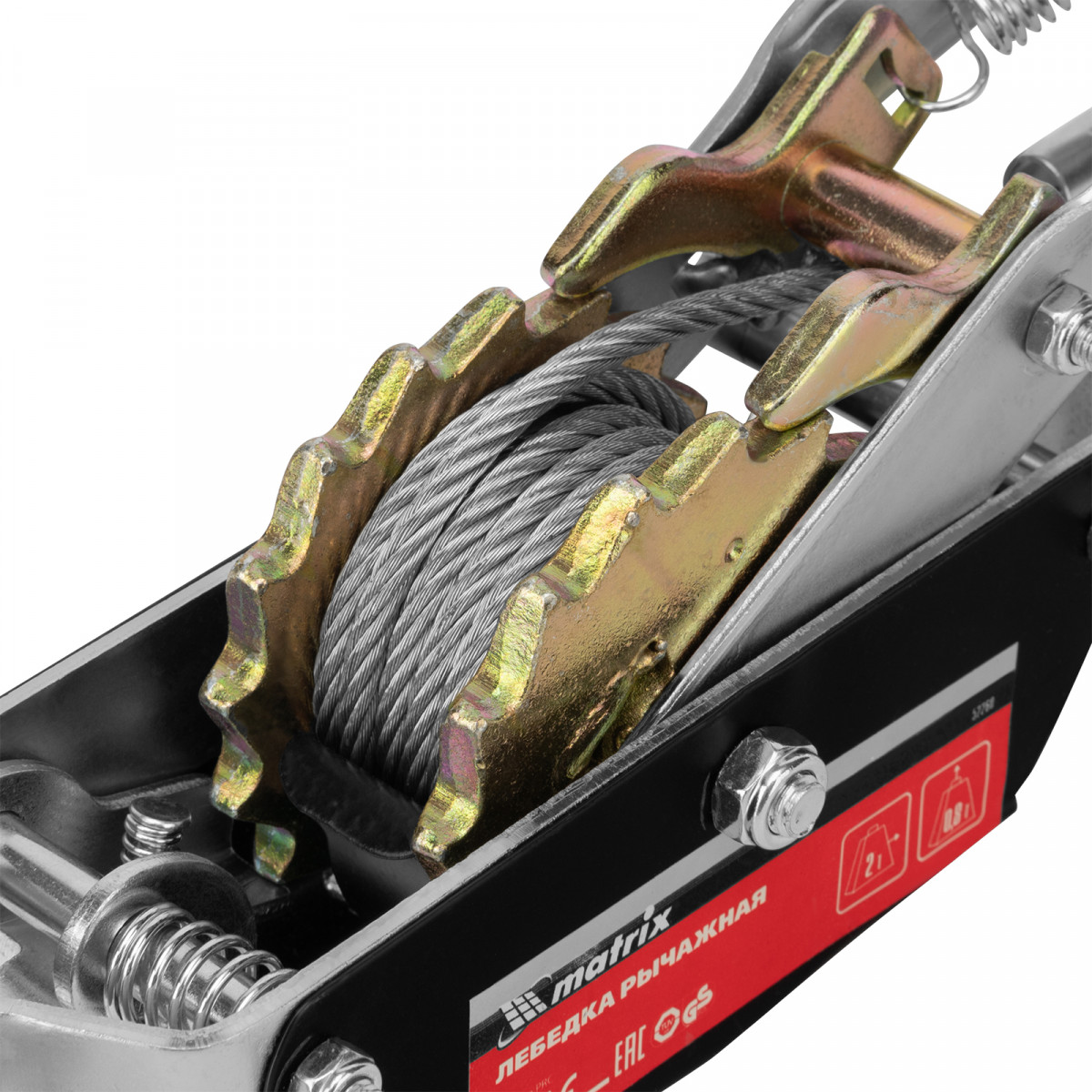 Лебедка рычажная, тяга 2 т, подъем 0.8 т, двойное храповое колесо Matrix