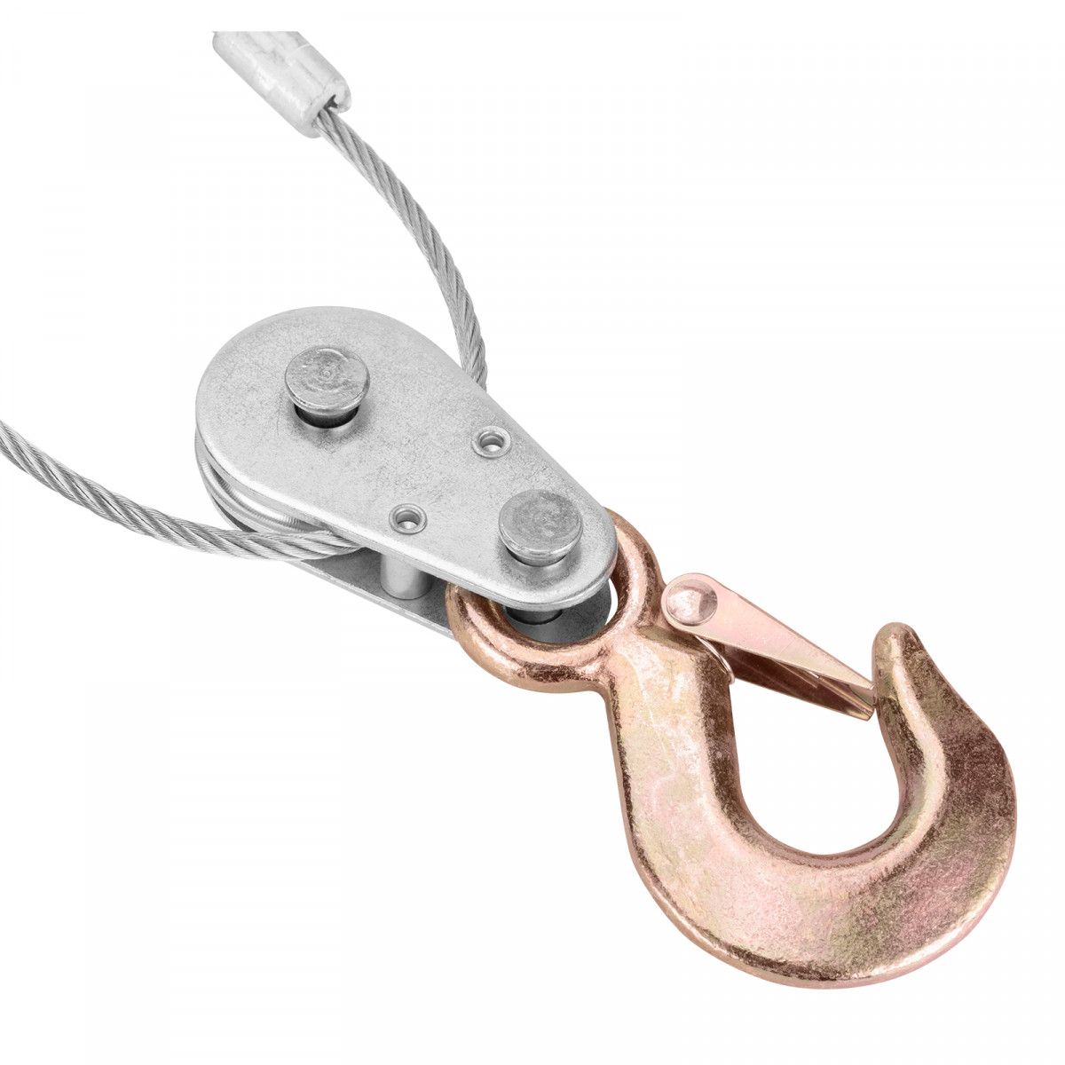 • Безопасная работа — прочный стальной трос диаметром 4,8 мм не рвется под нагрузкой (при соблюдении условий эксплуатации), а стопорный механизм не допускает падения груза.