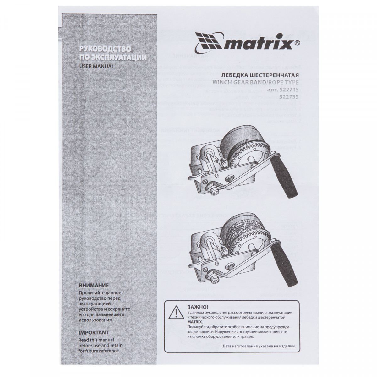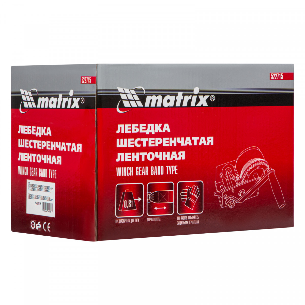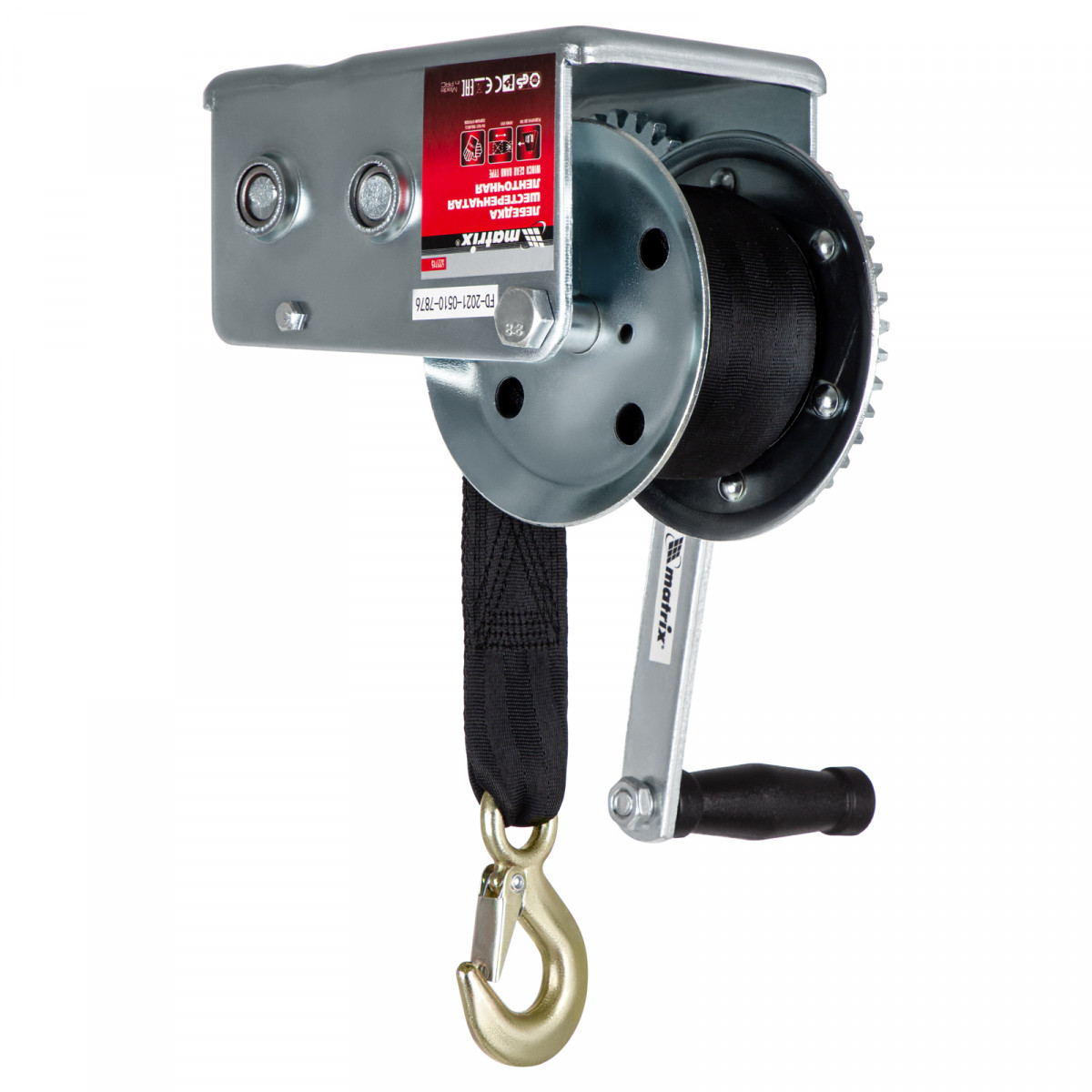 Лебедка шестеренчатая, тяга 0.8 т, ленточная Matrix