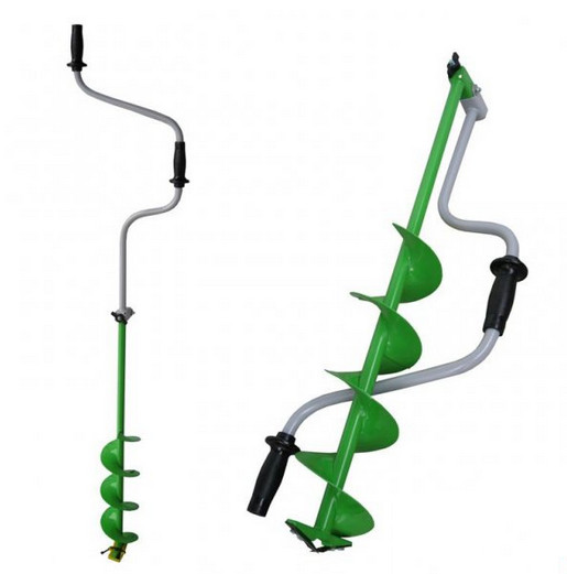 Двуручное вращение увеличивает скорость бурения лунок во льду.