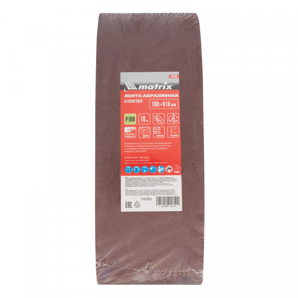 Лента абразивная бесконечная, P 100, 100 х 610 мм, 10 шт Matrix