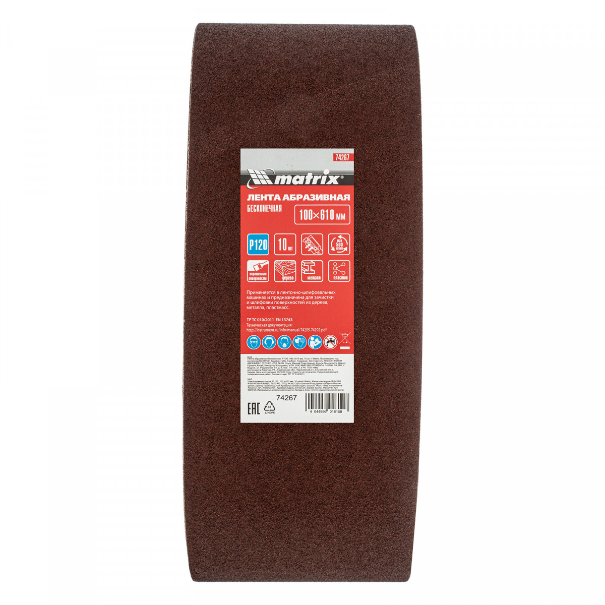 Лента абразивная бесконечная, P 120, 100 х 610 мм, 10 шт Matrix