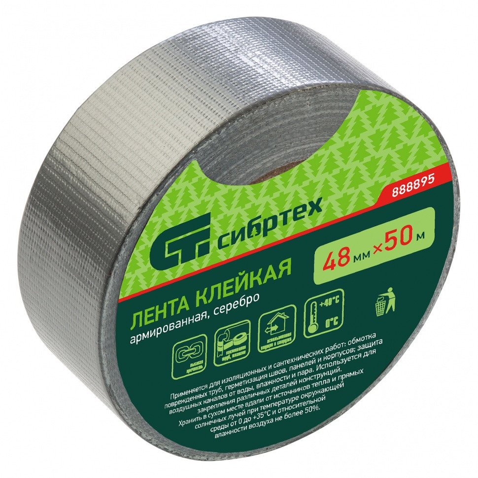 Лента клейкая армированная, 48 мм х 50 м, серебро Сибртех