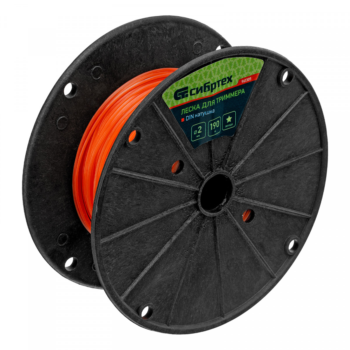 Леска для триммера звезда, на DIN катушке, 2.0 мм х 190 м, Сибртех