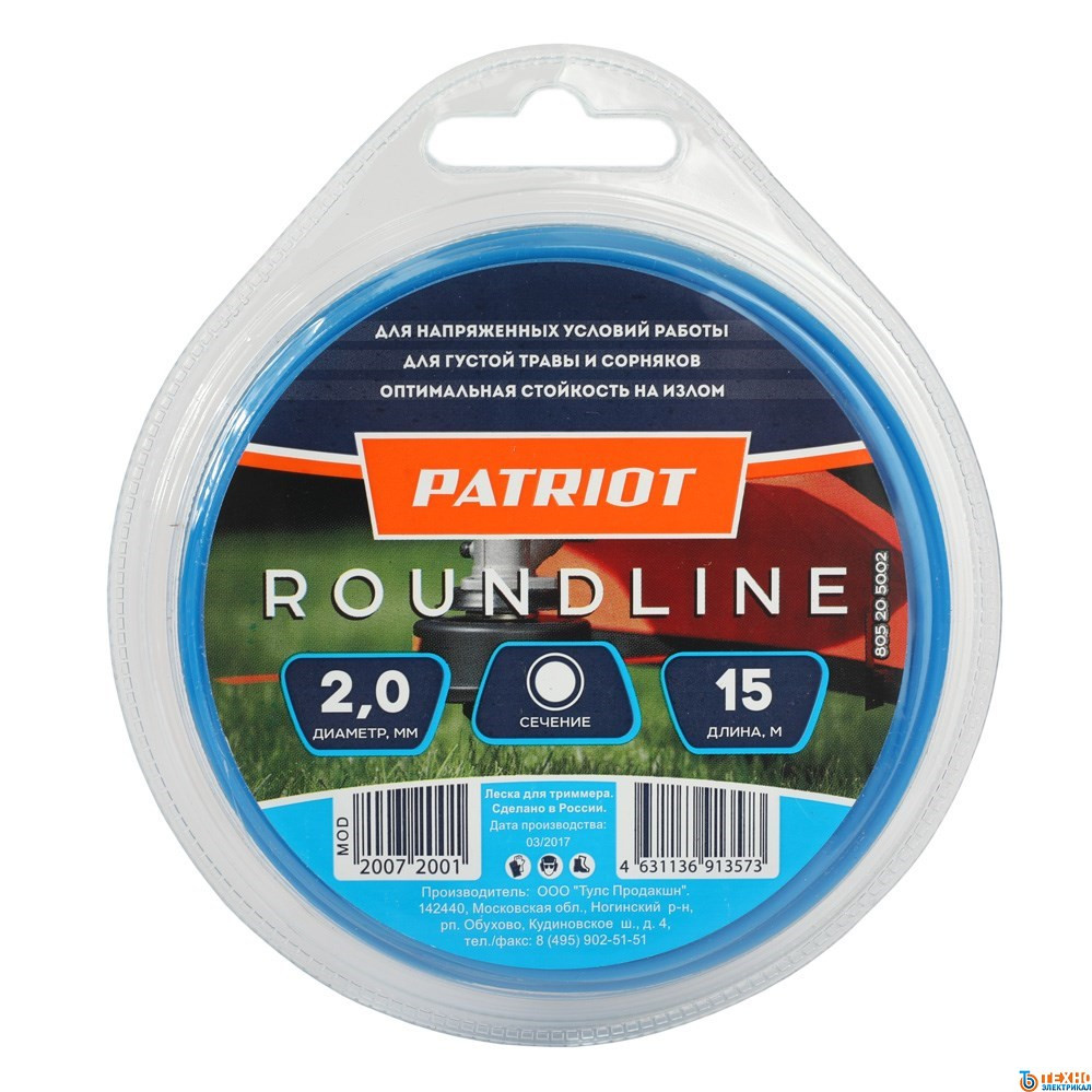 Леска триммерная D 2,0 мм L 15 м (круглая, желтая/синяя) Roundline