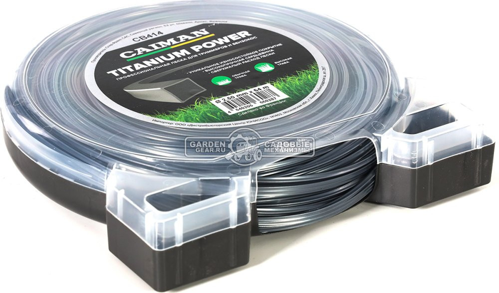 Леска Caiman CB414 Titanium Power 2,5 мм, 64 м, квадратная, двухслойная, блистер. Профессиональная двухслойная леска для бензокос и триммеров Caiman CB414 квадратного сечения (диаметр 2,5 мм, упаковка - блистер 64 м) изготовлена из запатентованных материалов (кополимеров, кополиамидов), чтобы обеспечить большой срок службы и малый расход. Такие качества по достоинству оценят пользователи, которым приходится длительно и регулярно выполнять работы по кошению. Леска прекрасно подходит для стрижки трвы вдоль заборов, бордюров, тротуаров, а также на каменистых участках. Двухслойная структура. Внутренний слой обеспечивает жесткость и прочность, а наружный – гибкость и износостойкость, которые противодействуют расщеплению краев лески при работе. Кроме того, леска не имеет эффекта «спекания» внутри триммерной насадки. Квадратное сечение. Обеспечивает отличный рез, благодаря острым краям, поэтому такая леска прекрасно подойдет для мягкой травы, которую она срезает аккуратно (подобно острым ножам), не оставляя «рваных»