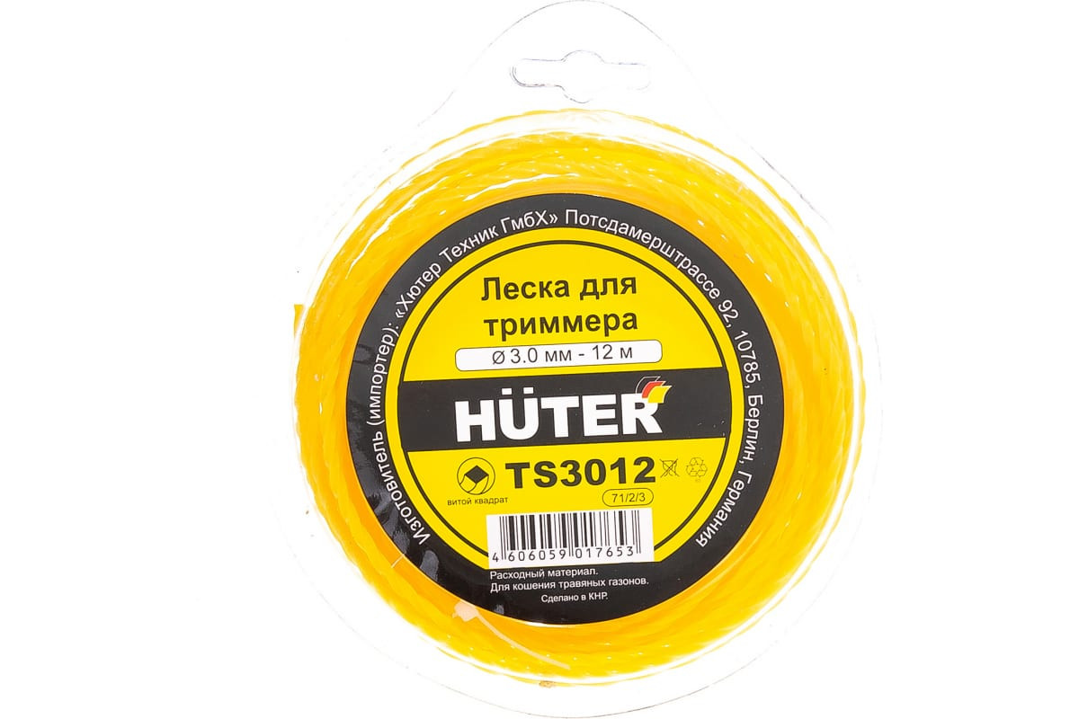 Леска Huter TS3012 с сечение в форме витого квадрата, диаметр 3 мм, длина 12 м. Подходит для триммеров: