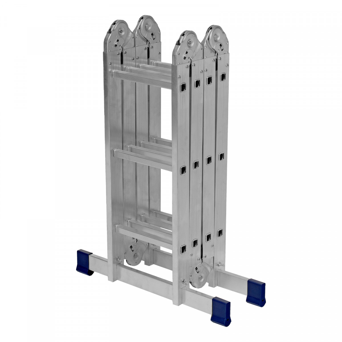 Шарнирная алюминиевая лестница Сибртех 97881 представляет собой 4 секции по 3 ступени, которые можно настроить в нескольких рабочих положениях. Она может использоваться в качестве приставной лестницы, двухсторонней стремянки и помоста. Будет полезна как в быту, так и на небольших стройках, в гараже и магазинах.