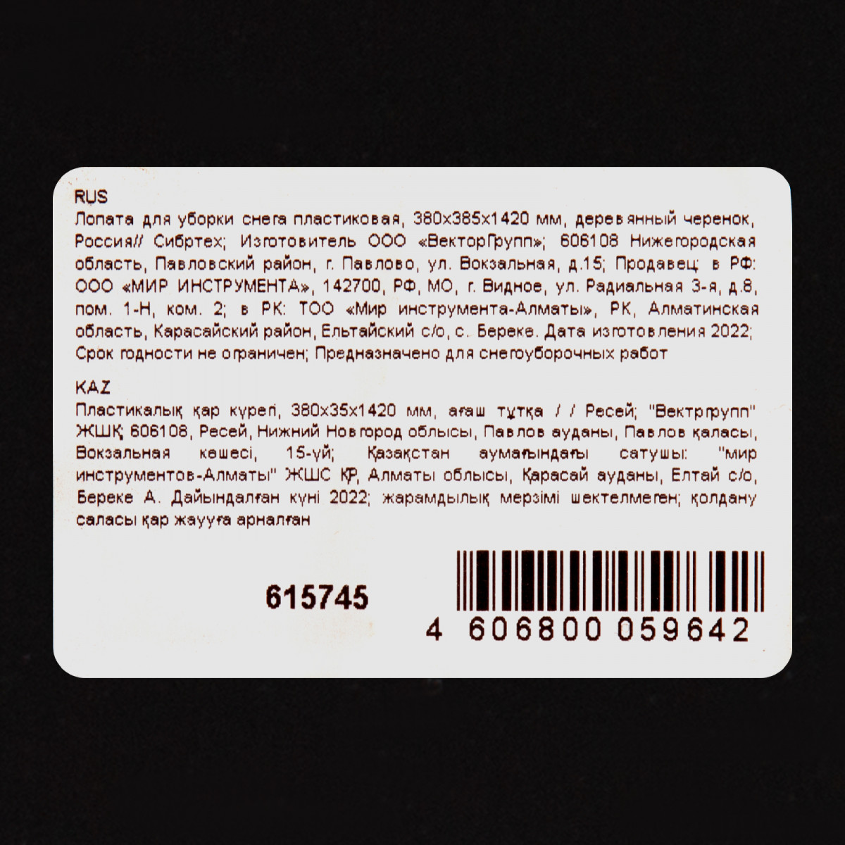 Пластиковая лопата 615745 размером 380 х 385 х 1420 мм, с деревянным черенком, позволяет облегчить уборку снега. С ее помощью можно очистить дорожки в загородном доме, выезд из гаража и т.д. С облегченной лопатой 820 г легко справятся женщины и подростки. А за счет длины 1420 мм с ней комфортно работать, т.к. снижается нагрузка на спину.