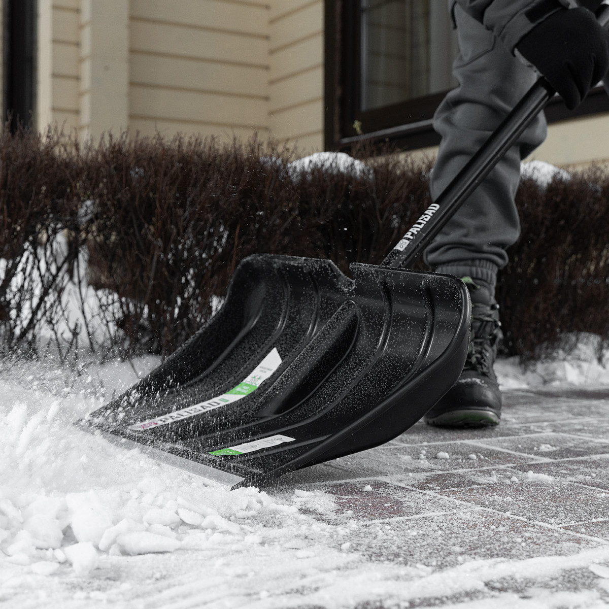 Лопата Palisad BASE 61798 размером 455 x 345 x 1330 мм, с ковшом из полипропилена и алюминиевым черенком, предназначена для уборки снега. Широкий ковш с бортиками вмещает большое количество снега. Лопата позволяет расчистить садовую дорожку, тротуар, площадку перед гаражом и т.д.