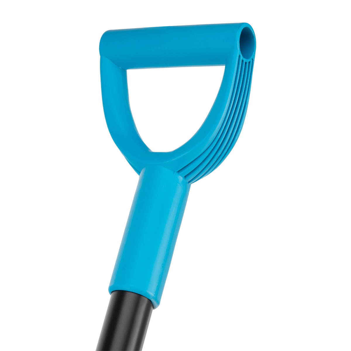 - Эргономичность — черенок овального сечения с D-образной рукояткой обеспечивает надежный захват и уменьшает нагрузку на кисть.