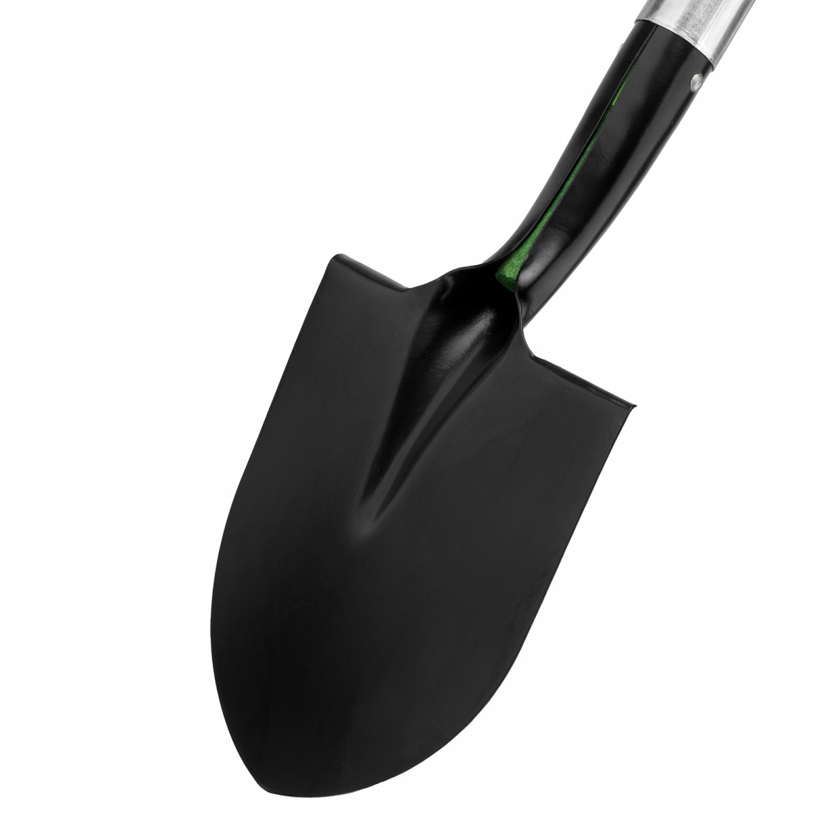 - Продуманная конструкция — фибергласовый черенок не утяжеляет лопату и не разрушается под действием ультрафиолета, а удлиненная цельновырубная тулейка предотвращает его излом.