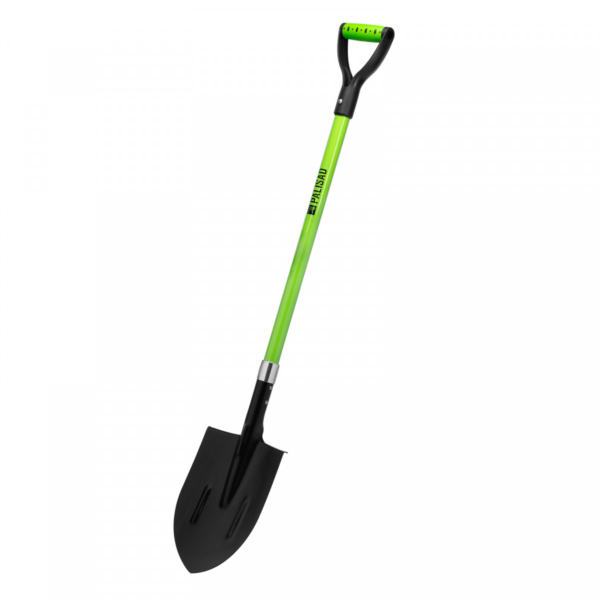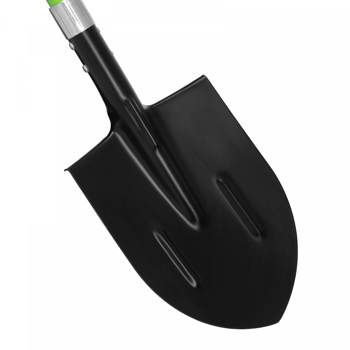 - Продуманная конструкция — фибергласовый черенок не утяжеляет лопату и не разрушается под действием ультрафиолета, а удлиненная цельновырубная тулейка предотвращает его излом.