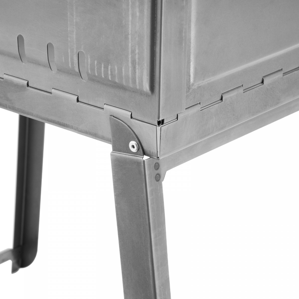 • Долгий срок службы — мангал изготовлен из жаропрочной углеродистой стали увеличенной толщины 1 мм, ребра жесткости повышают прочность конструкции.