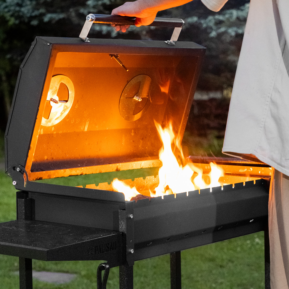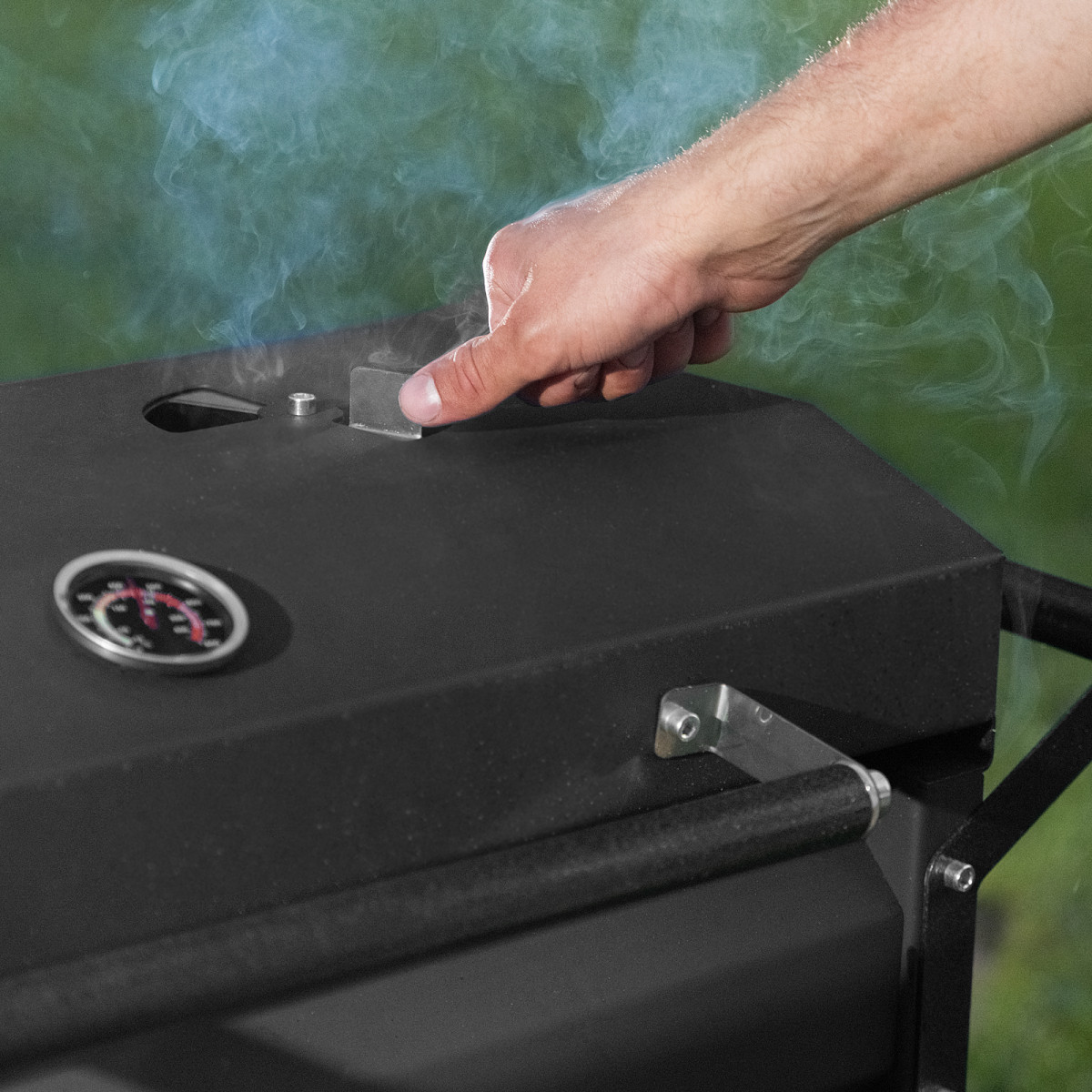 • Комфортное использование — в корпусе предусмотрены прорези для шампуров, на крышке расположен термометр для точного контроля температуры.