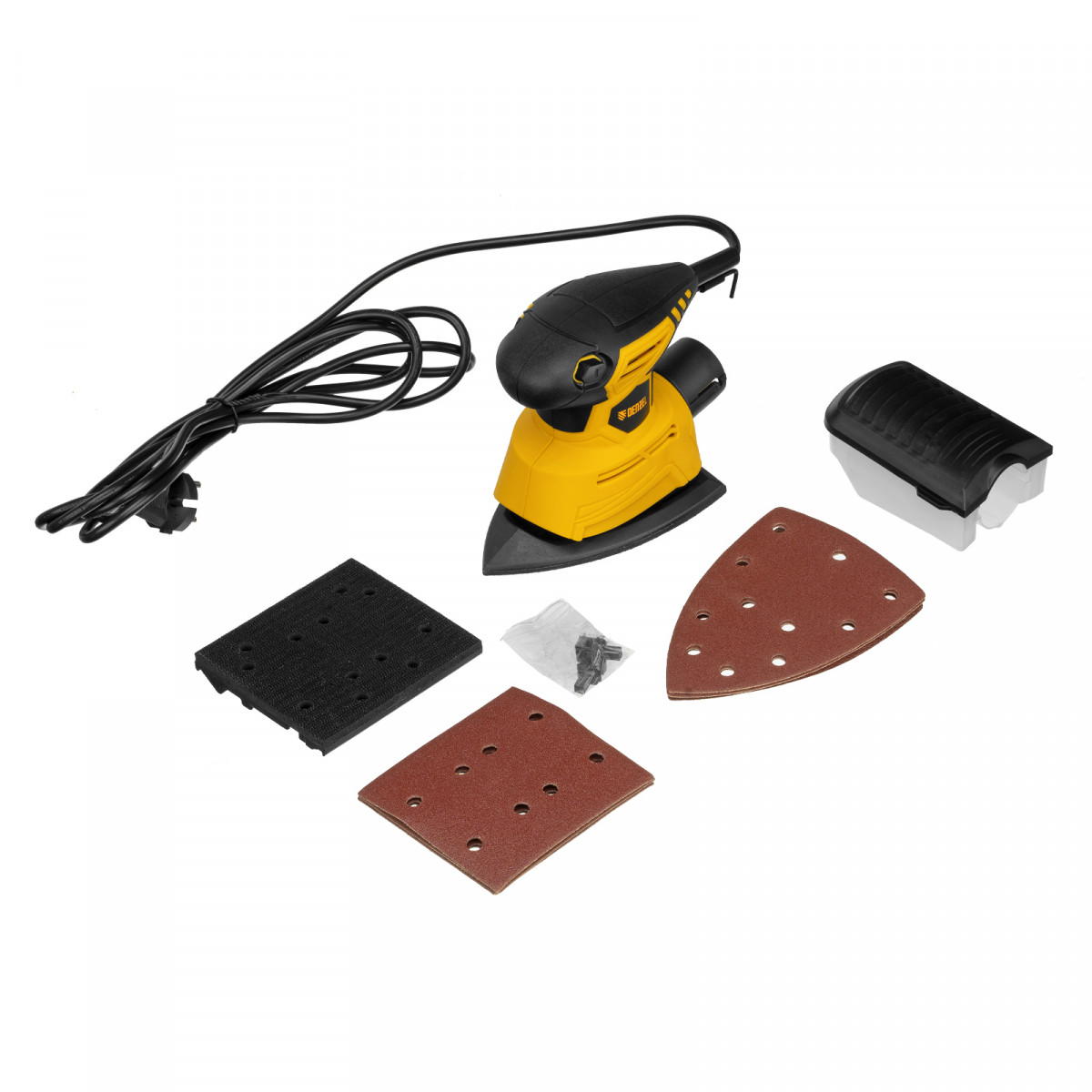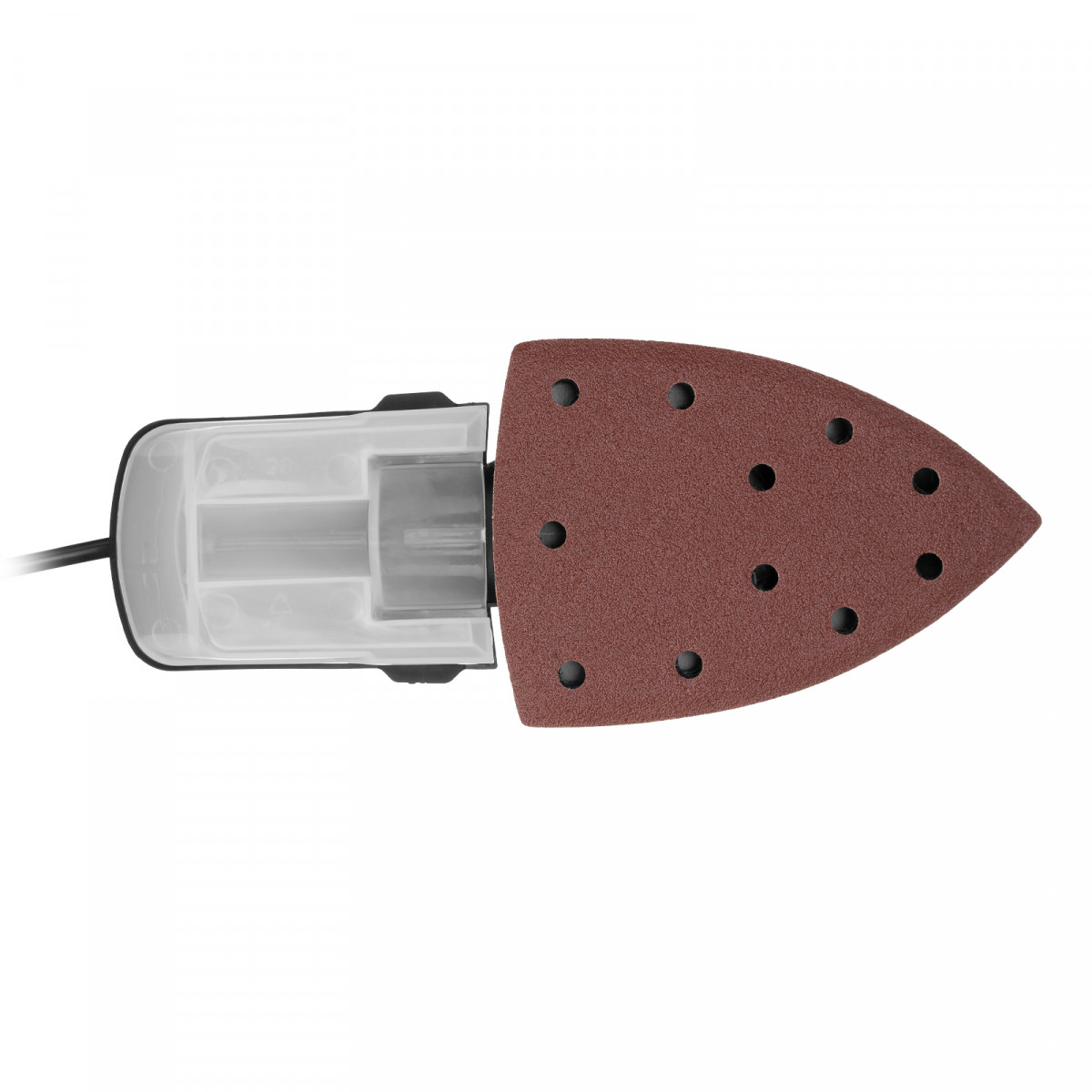 • Готовность к работе — в комплект входит 2 набора шлифовальной бумаги для прямоугольной и треугольной подошв, а также запасные угольные щётки.