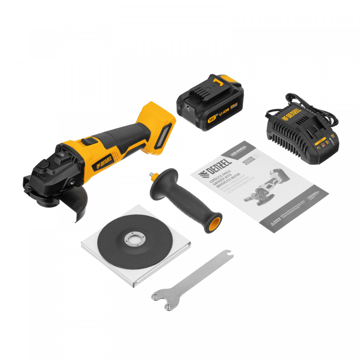Машина углошлифовальная аккумуляторная бесщет. BLG-IB-18-125-4, Li-ion, 18 В Denzel