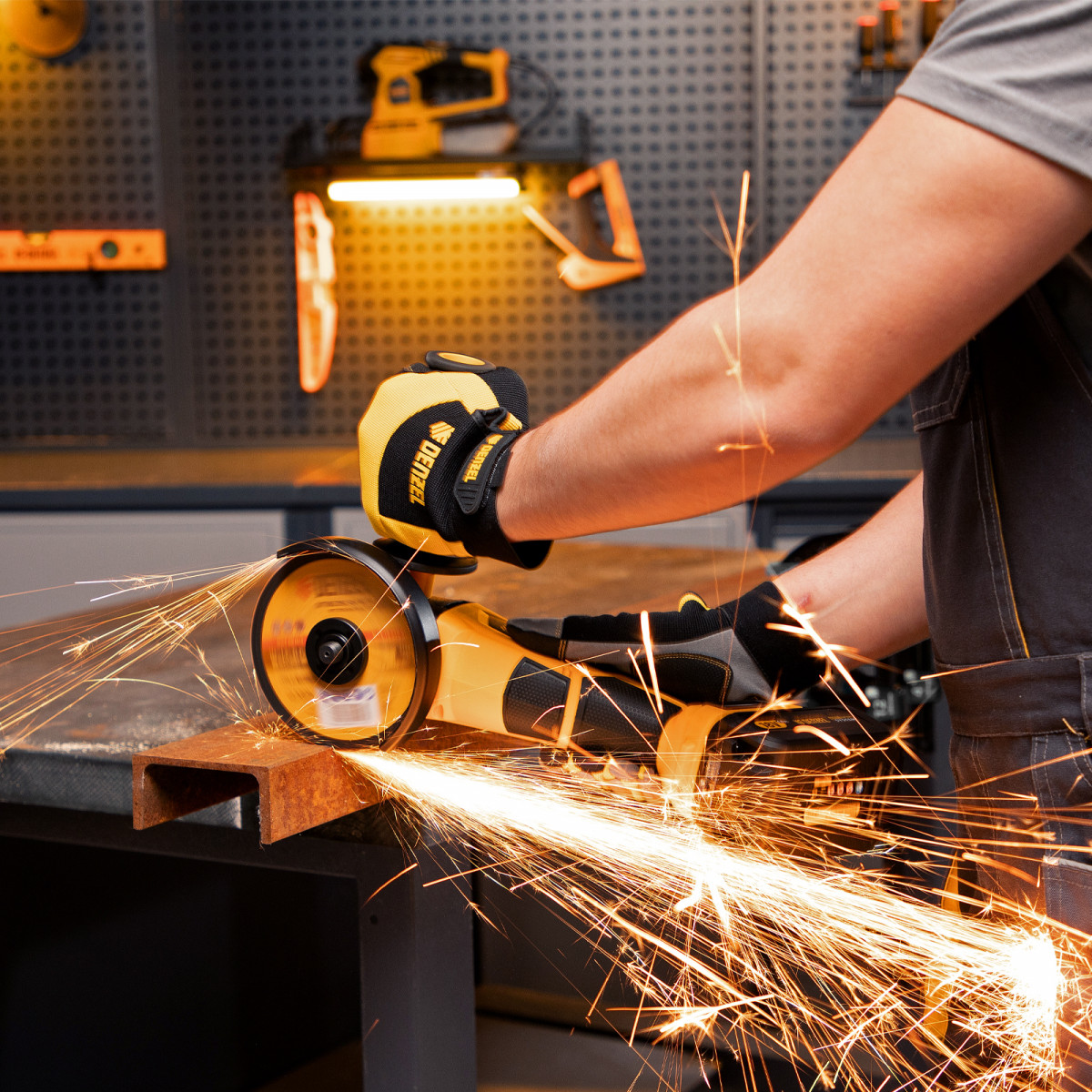 • Быстрая замена оснастки — конструкцией предусмотрена блокировка шпинделя и бесключевое крепление защитного кожуха.