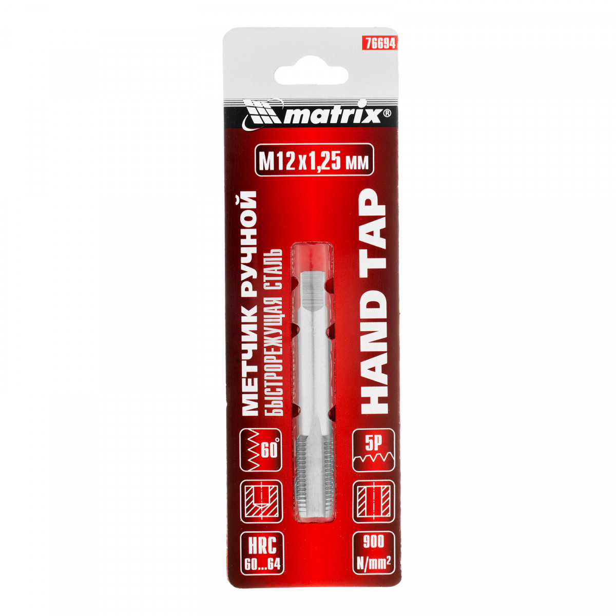 Ручной метчик Matrix 76694, HSS, — резьбонарезной инструмент, который используется для создания резьбы диаметром М12 и шагом 1,25 мм. Оптимален для работы с деталями из твердой стали прочностью до 900 Н/мм². Нарезает резьбу за один проход. Метчик устанавливается на метчикодержатель с патроном под хвостовик 7 мм. Будет полезен в слесарной мастерской, а также дома или в гараже.