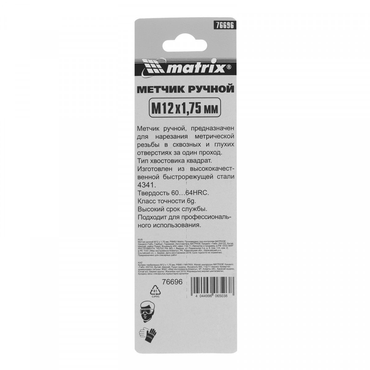 Метчик ручной М12 х 1.75 мм, Р6М5 Matrix