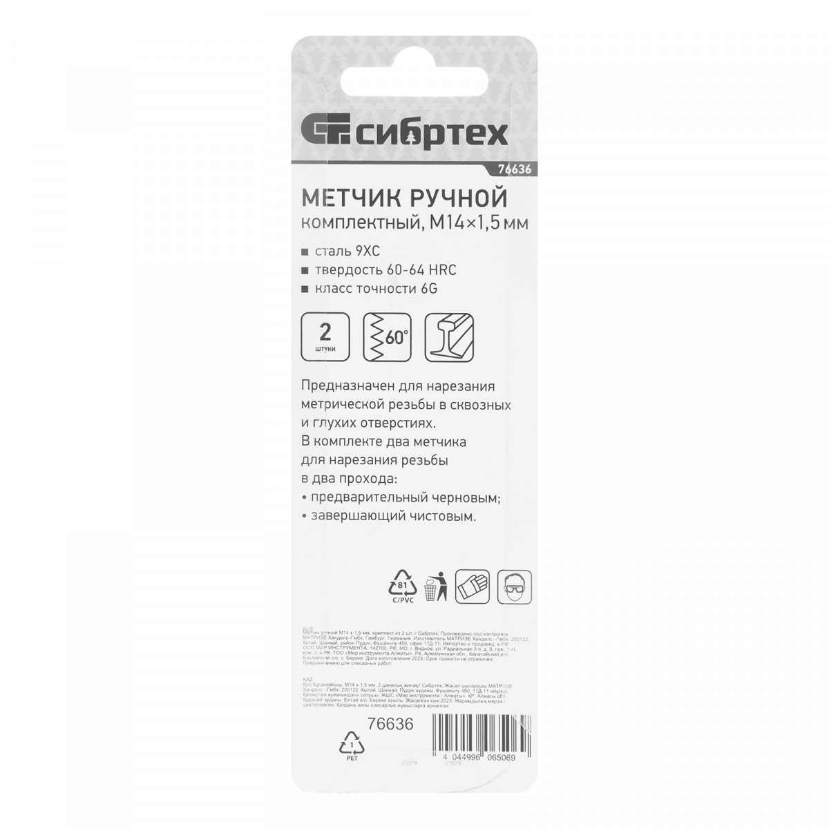 Метчик ручной М14 х 1.5 мм, комплект из 2 шт Сибртех