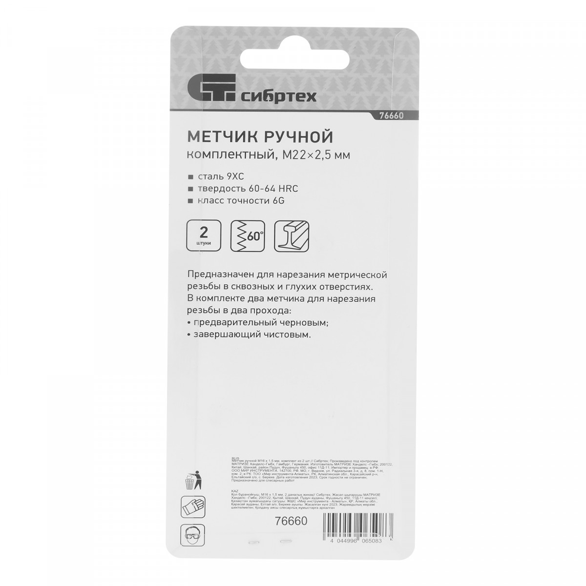 • Высокая точность резьбы — в наборе 2 метчика: черновой для первого прохода и чистовой для финишной доводки.