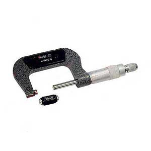 Микрометр изготовлен из инструментальной стали. Имеет форму скобы. Основным рабочим элементом является микрометрическая головка. Упакован в пластмассовый кейс. Предназначен для особо точных измерений.