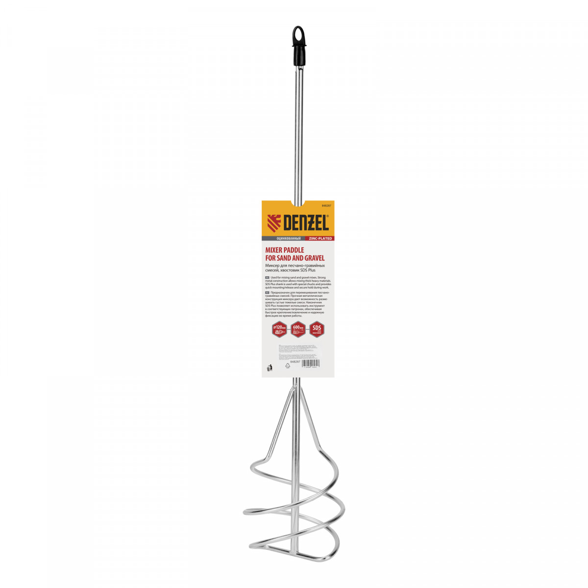 Оцинкованный миксер Denzel 848287 диаметром 120 мм и длиной 600 мм, с хвостовиком SDS-plus, используется во время строительства и ремонта для перемешивания песчано-гравийных и других тяжелых смесей. Вращающаяся спираль движется по часовой стрелке, поднимая тяжелые частицы вверх и придавая однородность размешиваемому составу. Миксер SDS-plus совместим с перфораторами средней и высокой мощности.