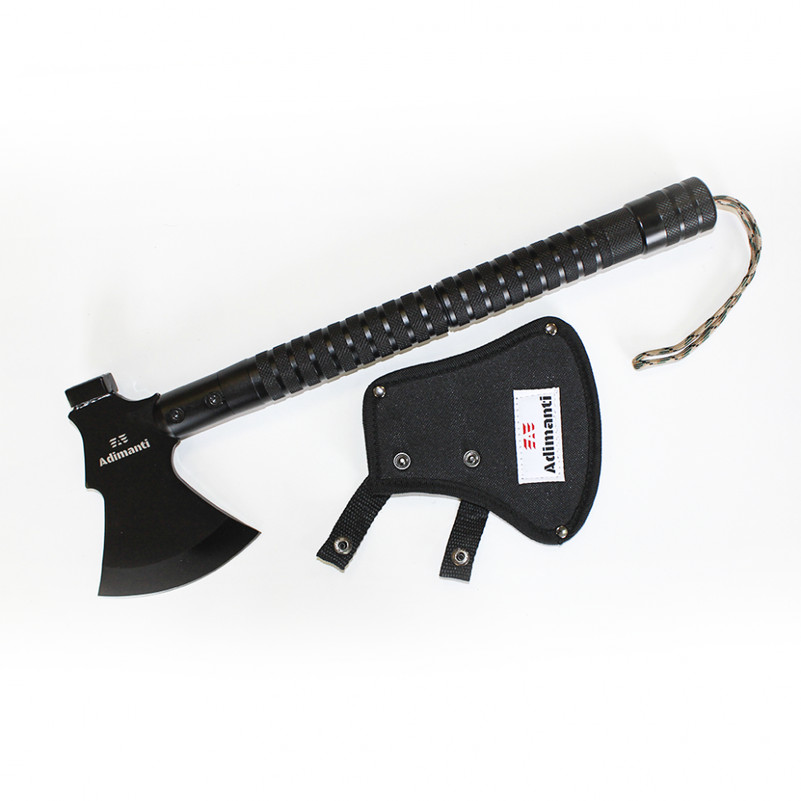 Модель AXE-003 от бренда Adimanti – многофункциональный инструмент, чья конструкция включает острый топор и ряд мелких дополнений. Изделие предназначено для использования в полевых условиях и обладает компактными размерами, что позволяет носить инструмент в туристическом рюкзаке или хранить в багажнике автомобиля.