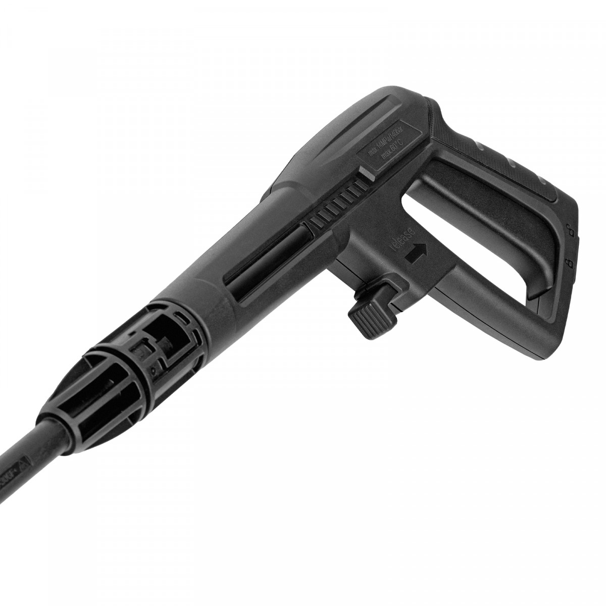 • Безопасность — перед началом работы необходимо разблокировать рычаг моечного пистолета для предотвращения случайного запуска.