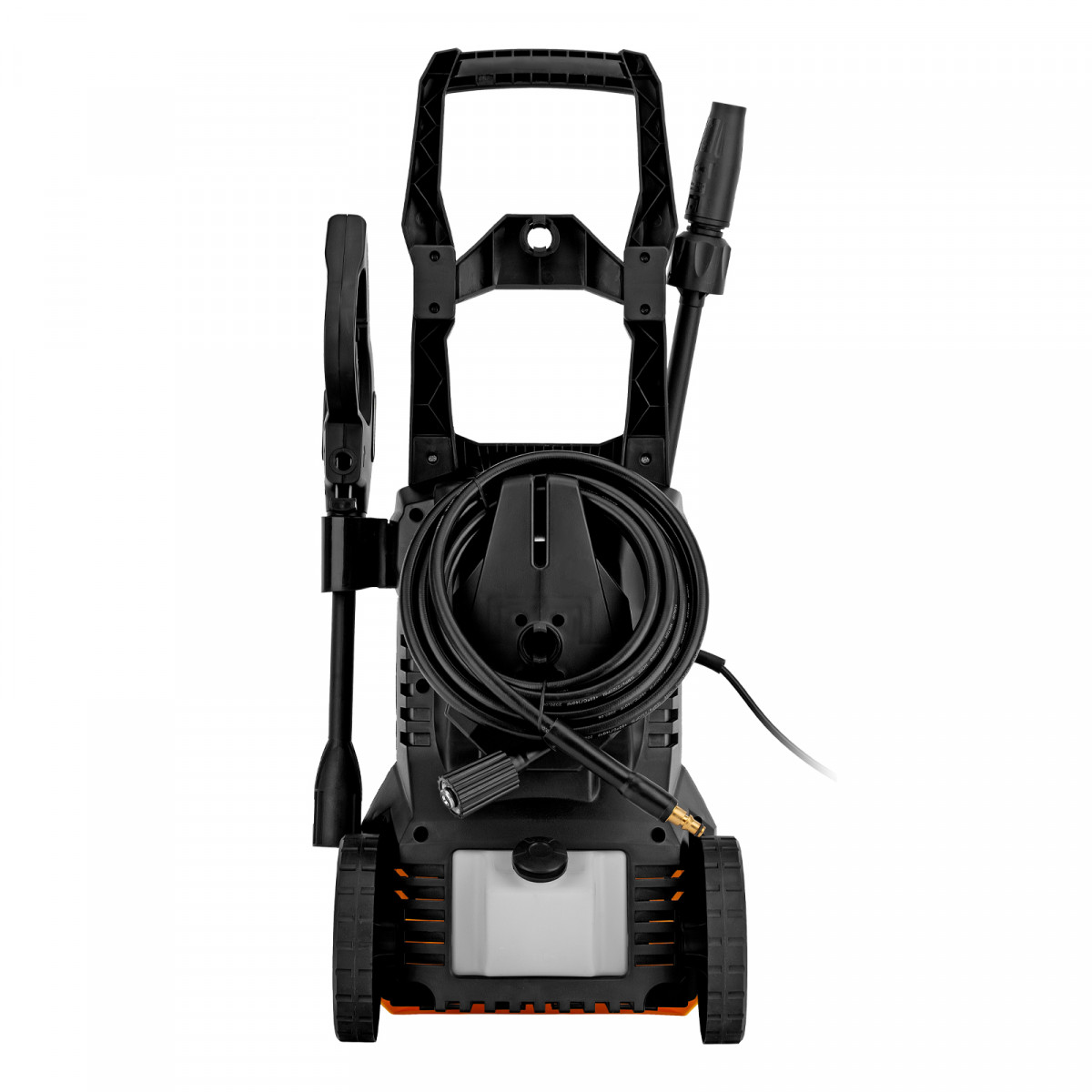- Удобная транспортировка — мойка оснащена колесами, а на корпусе предусмотрена ручка.
