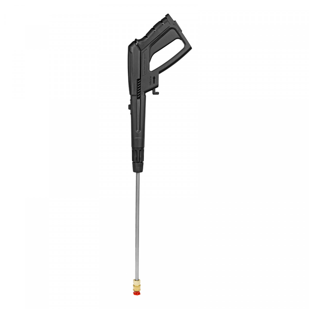 - Защита от случайного пуска — перед началом работы необходимо разблокировать рычаг моечного пистолета.