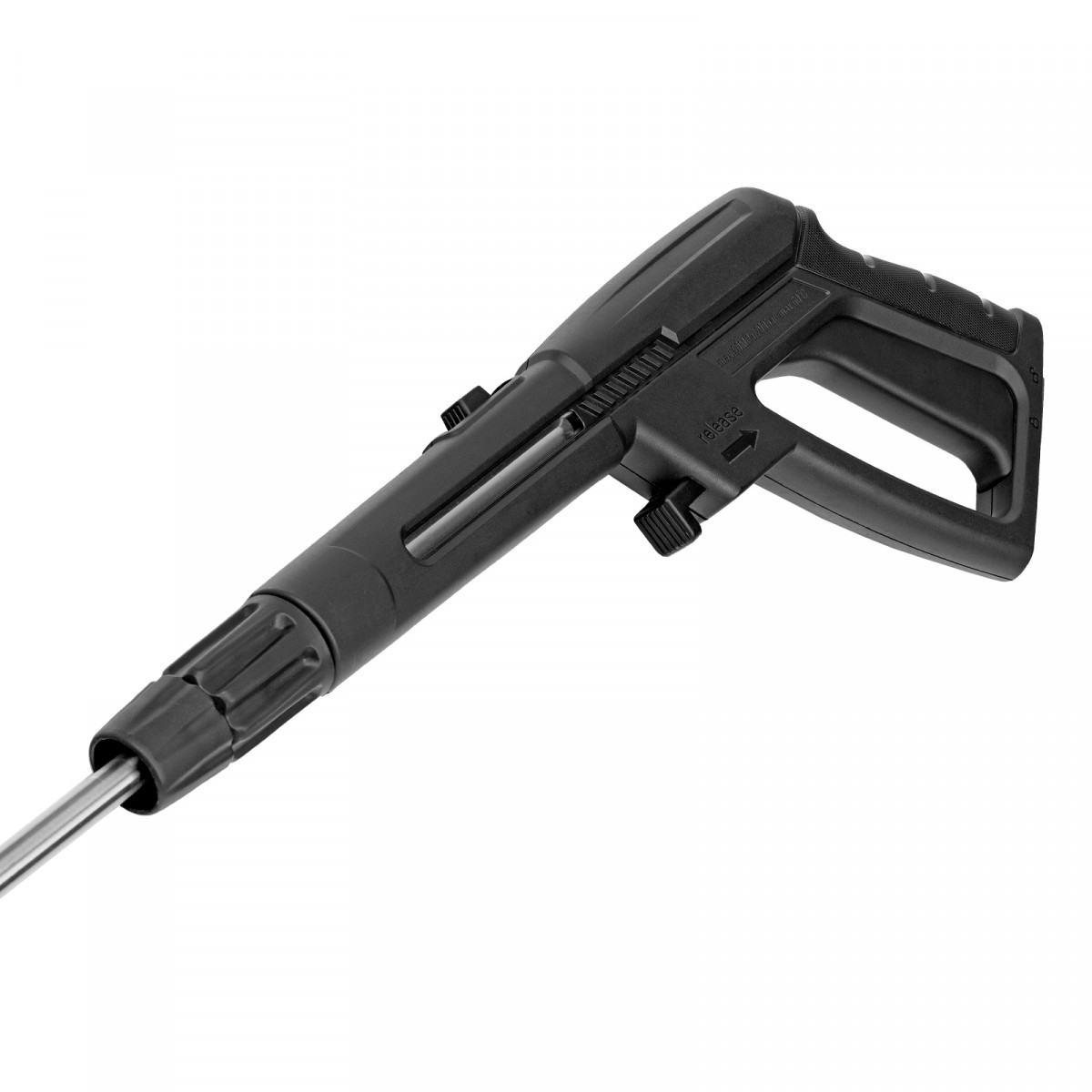 • Защита от случайного пуска — перед началом работы необходимо разблокировать рычаг моечного пистолета.