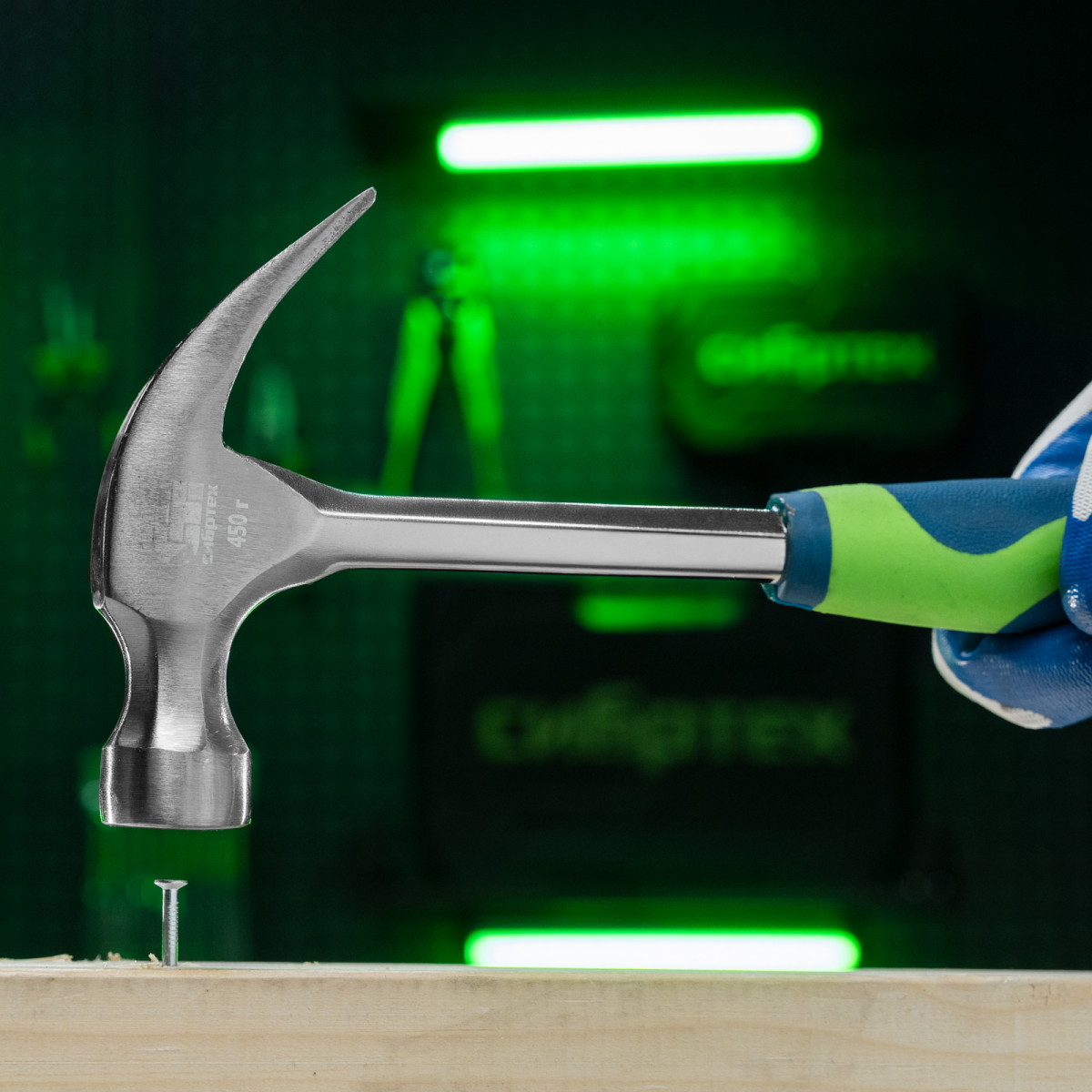 - Надежность — металлическая трубчатая рукоятка устойчива к изгибающим нагрузкам и повреждениям в случае промаха по гвоздю.