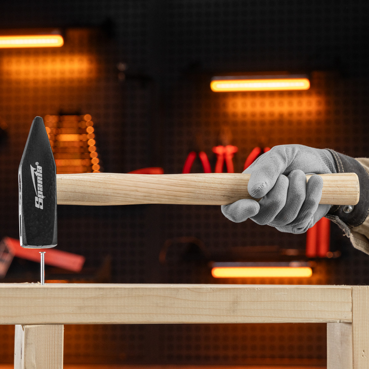 Молоток слесарный, 1000 г, квадратный боек, деревянная рукоятка Sparta