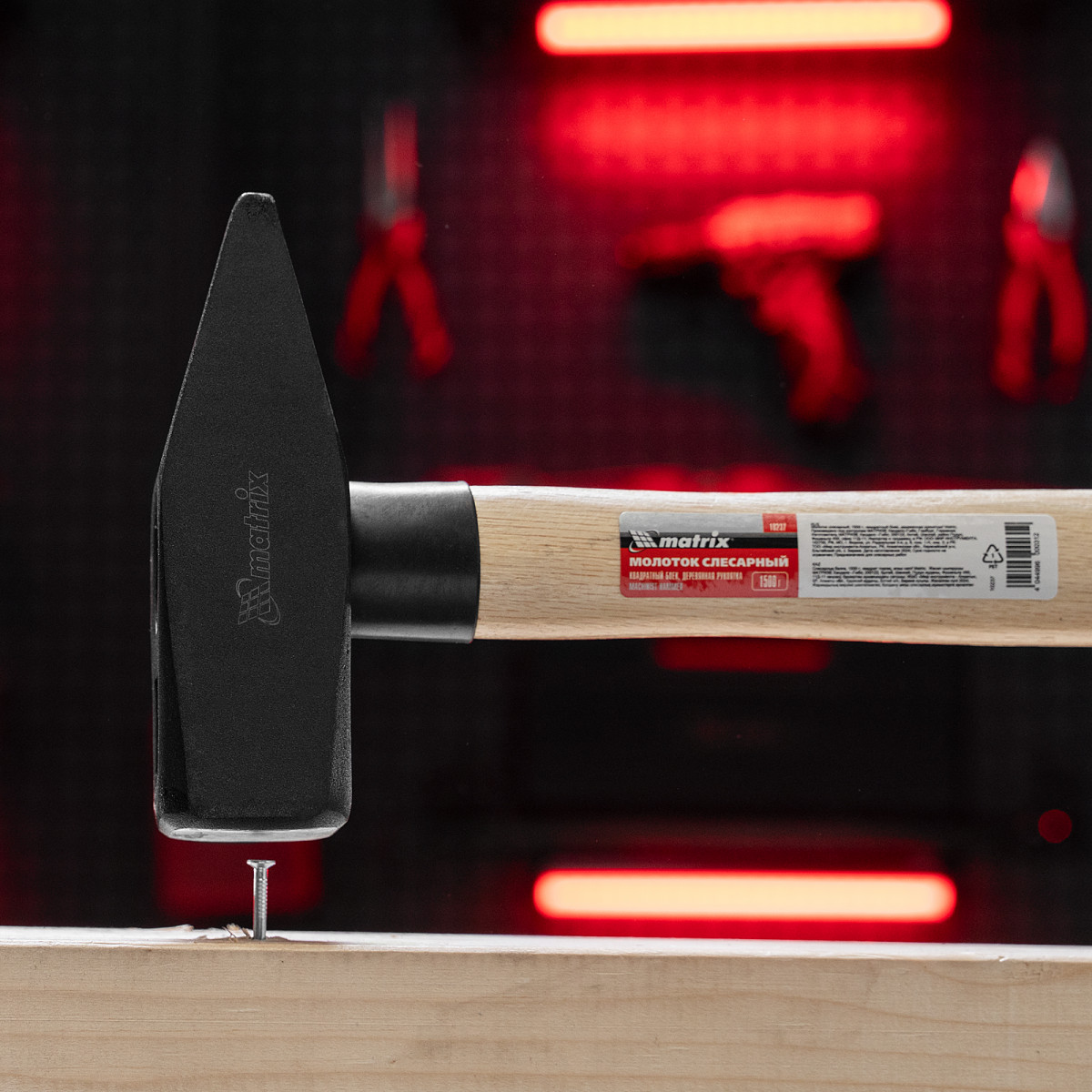 Молоток слесарный, 1500 г, квадратный боек, деревянная рукоятка Matrix