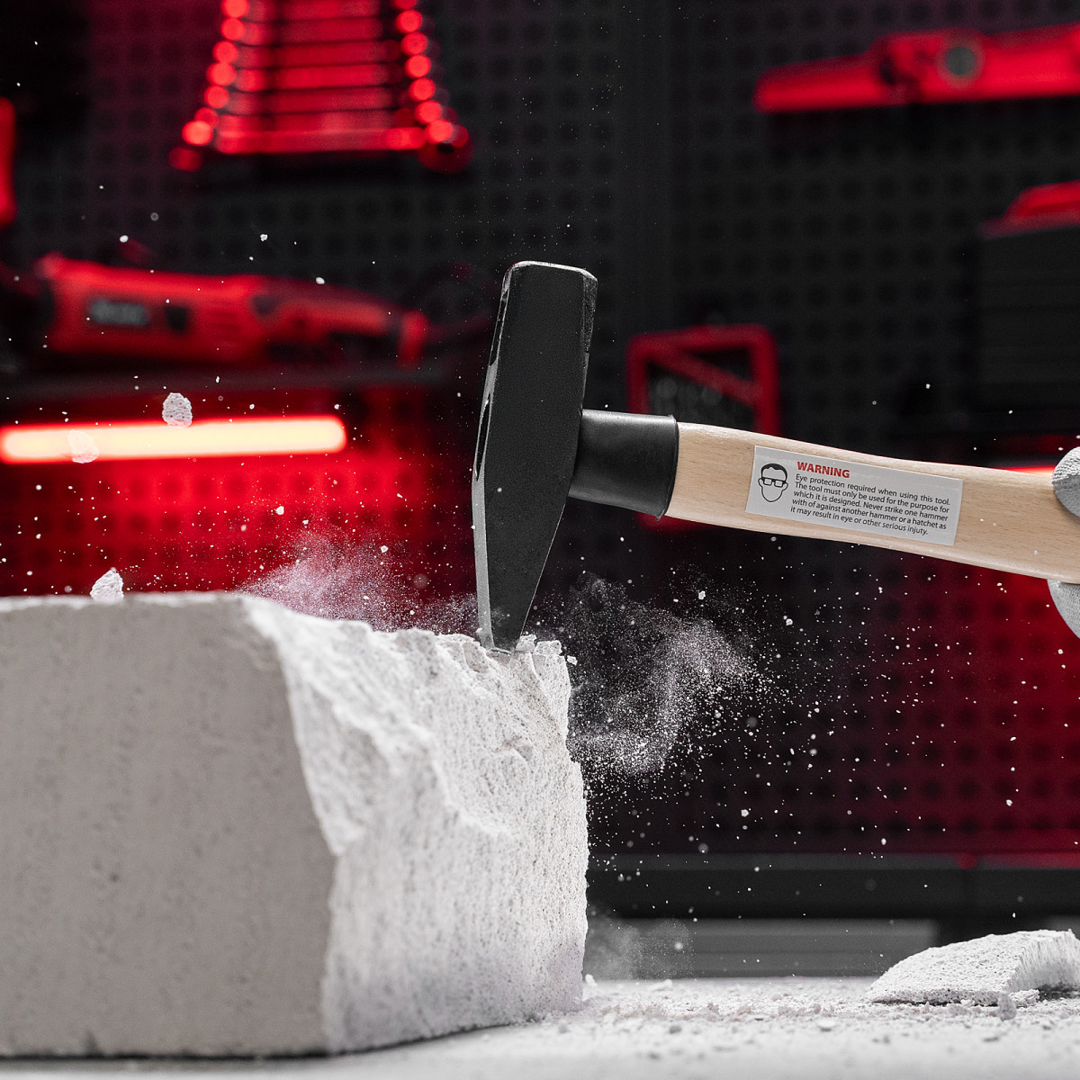 • Надежная конструкция — рукоятка расклинена, головка дополнительно зафиксирована эпоксидным клеем, увеличенная «юбка» в месте всада защищает рукоятку в случае промаха при ударе.