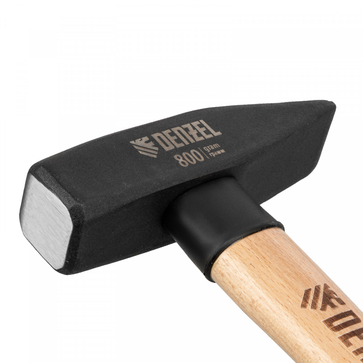 Молоток слесарный, 800 г, кованый квадратный боек, буковая рукоятка Denzel