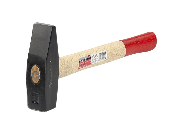 Молоток слесарный, 1000 грамм, квадратный боек, деревянная ручка. Рабочая часть инструмента покрыта черным лаком и надежно зафиксирована на рукоятке при помощи клина и специального эпоксидного клея. Боек кованый и отфрезерованный. Проведена селективная закалка, обеспечивающая бойку прочность и препятствующая образованию расклепов на его гранях. Деревянная рукоятка c прямым волокном, без сучков, защищена от рассыхания бесцветным лаком.