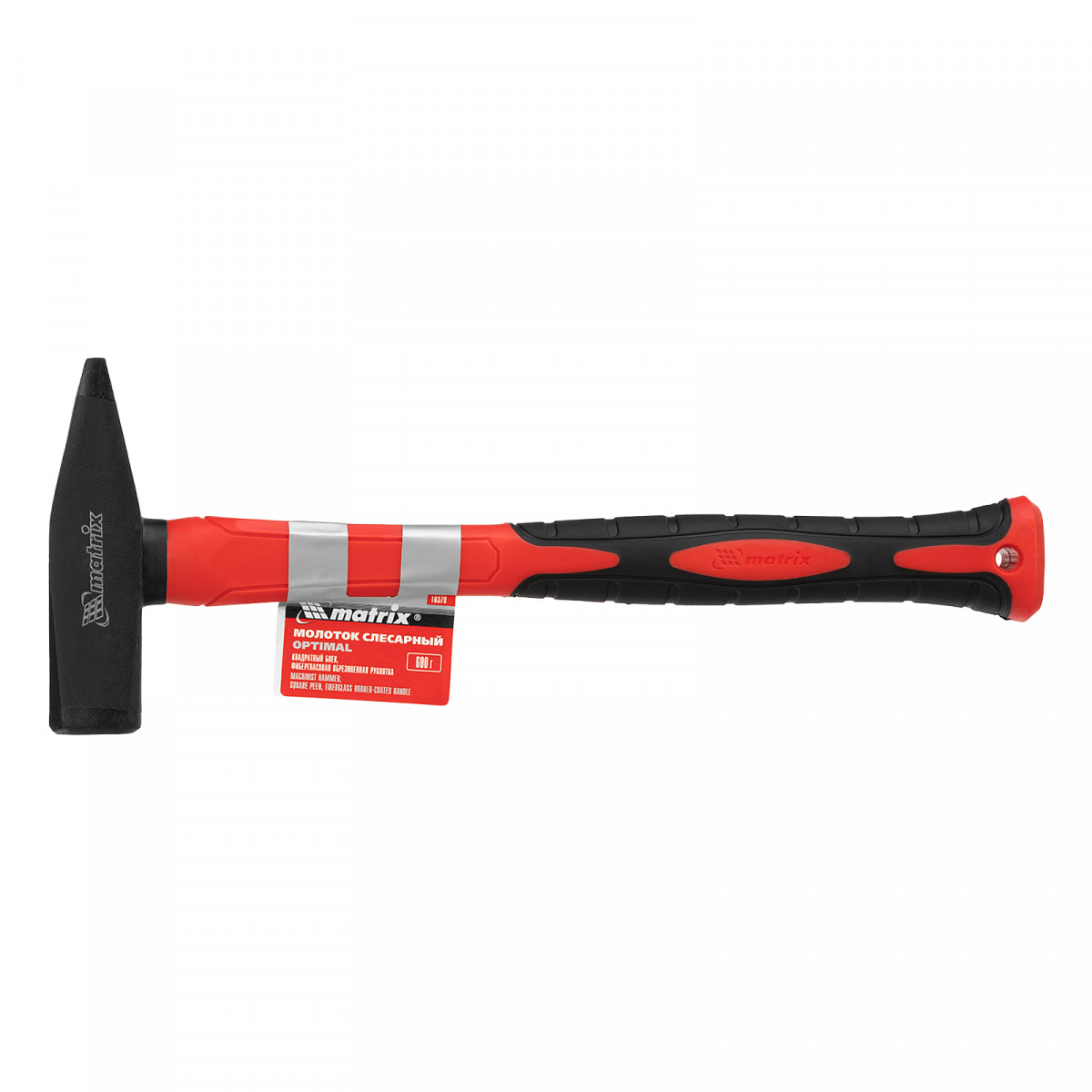 Молоток слесарный optimal, 600 г, фибергласовая обрезиненная рукоятка, квадратный боек Matrix