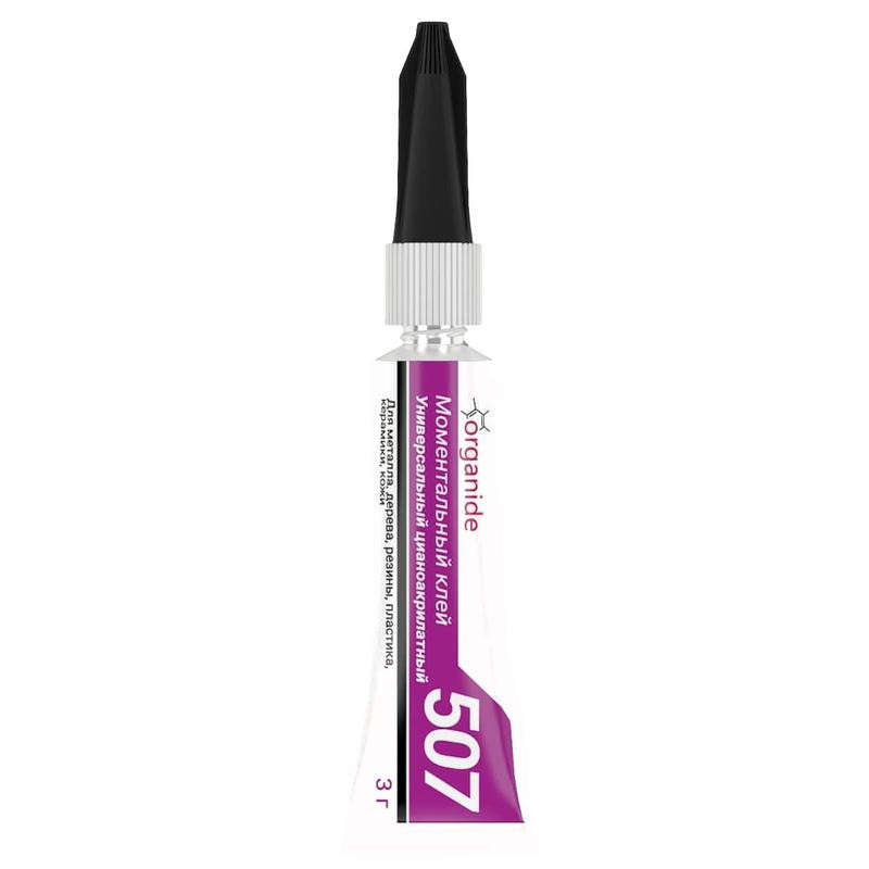 Клей универсальный Organide 507 3 г.Однокомпонентный моментальный клей для быстрого склеивания распространенных в быту материалов. Клеевое соединение устойчиво к органическим растворителям. Прочный клеевой шов.