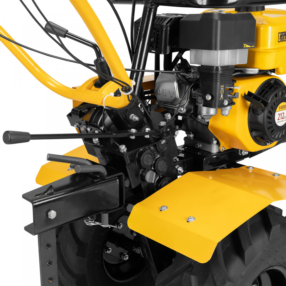 • Безопасная эксплуатация — широкие защитные крылья предотвращают вылет комьев земли и других предметов в сторону пользователя.