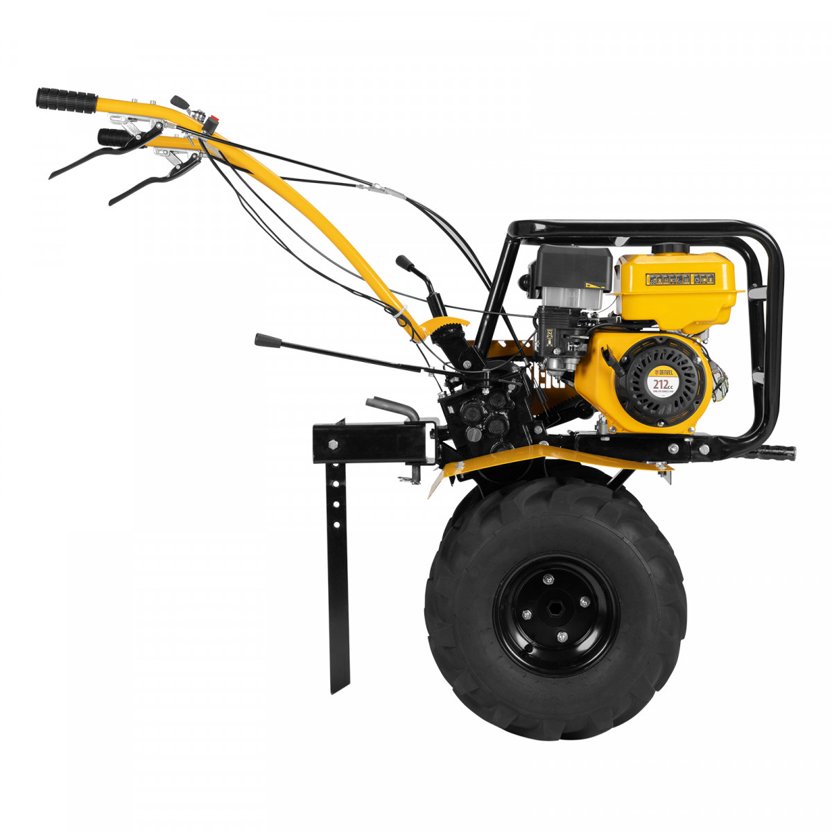 • Возможность использования в качестве транспортного средства — установив прицеп Denzel 59950, можно перемещаться по территории, а также перевозить грузы.