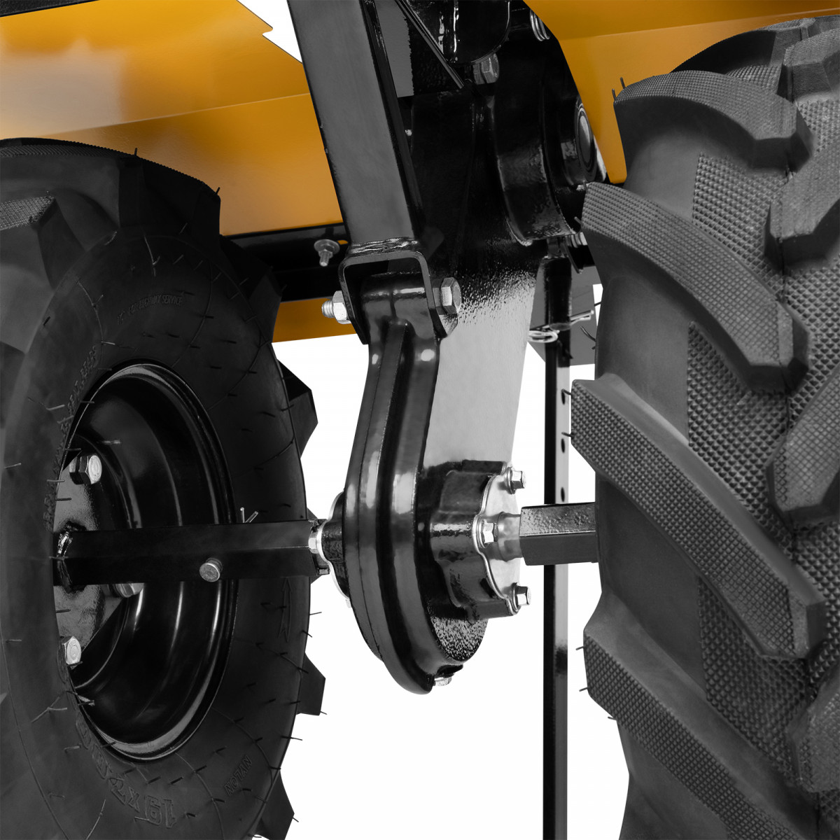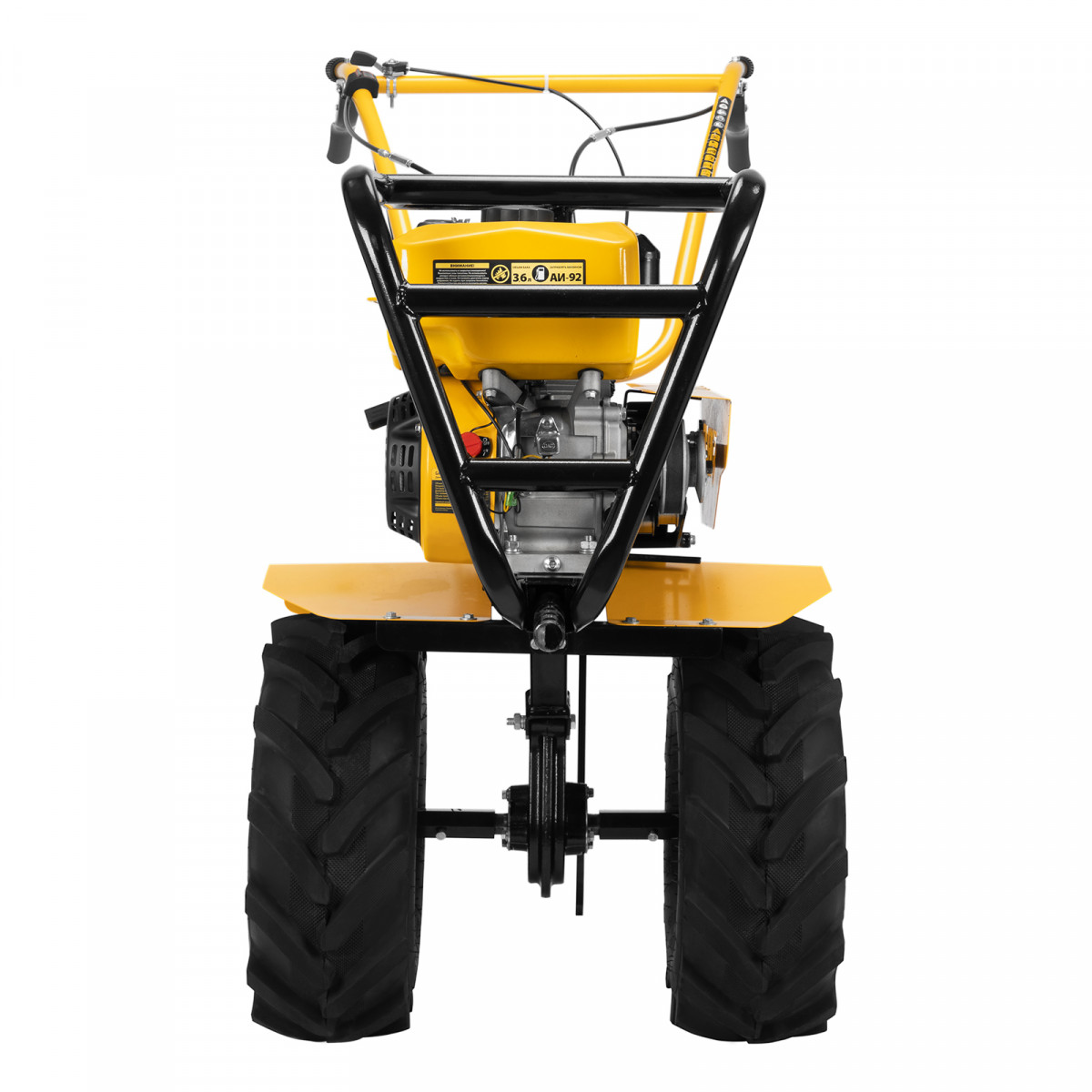 • Повышенная проходимость — мотоблок оснащен тракторными пневматическими колесами.