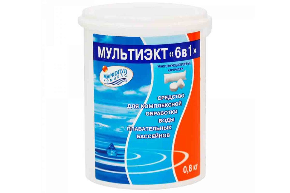 МУЛЬТИЭКТ "6 в 1" - картриджи с комплексным средством для обработки воды. Состав картриджа позволяет обеспечить полный уход за водой бассейна и её дезинфекцию.