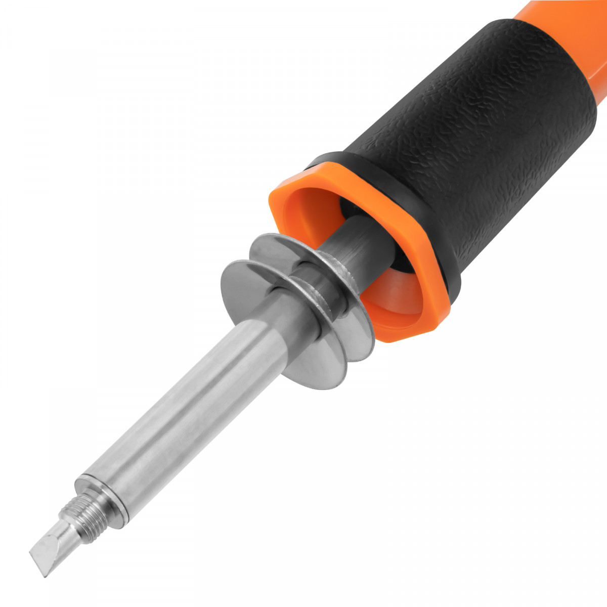 • Комфортная работа — на пластиковой рукоятке паяльника имеется широкое резиновое кольцо, благодаря которому она не нагревается и не выскальзывает из ладони.