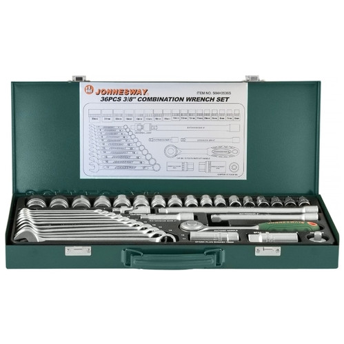 Набор торцевых головок и комбинированных ключей Jonnesway S04H3536S состоит из 36 предметов. Используется для монтажных, демонтажных, слесарных работ при производстве, ремонте автомобилей и другой техники. В комплект входят торцевые головки с размером посадочного отверстия - 3/8", приводы вращения, комбинированные ключи. Все что нужно для удобной, качественной работы с крепежом различного профиля и слабонагруженными резьбовыми соединениями.
