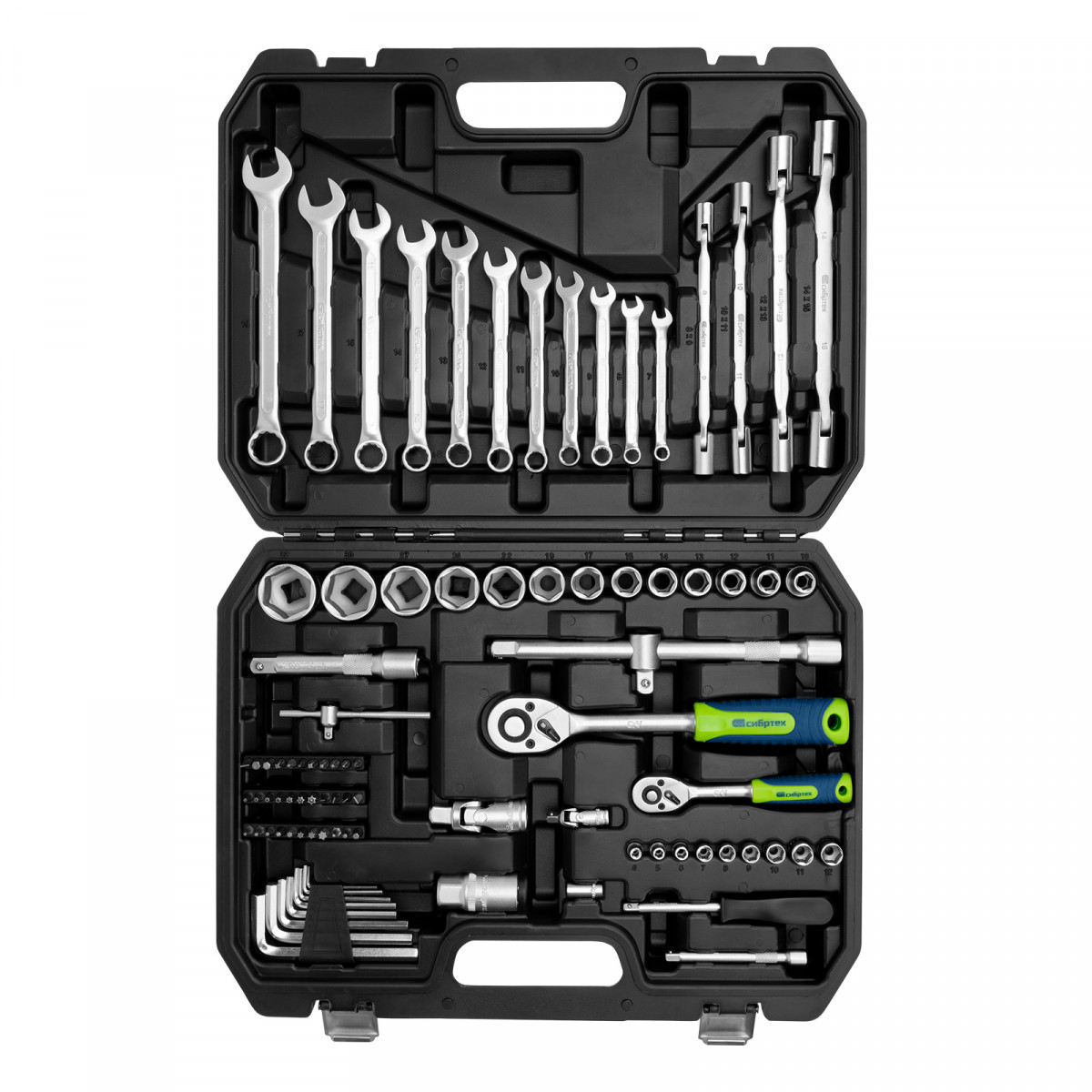 Набор инструментов, 1/2", 1/4", пластиковый кейс 89 предметов Сибртех